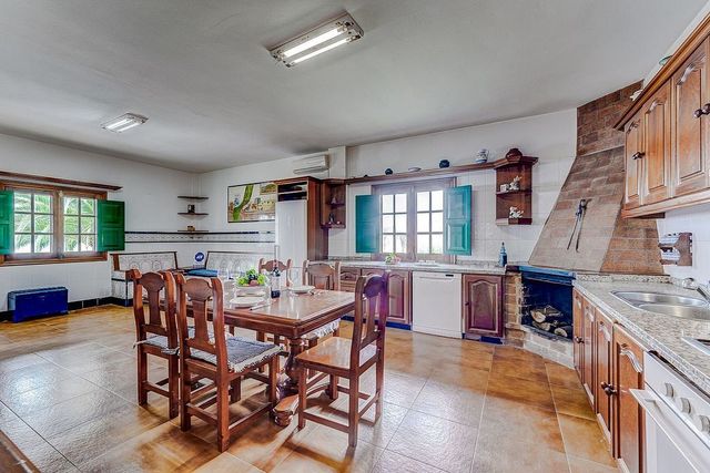 En la planta baja, una cocina con chimenea, equipada con todos los electrodomésticos necesarios (horno, frigorífico, lavavajillas y aire acondicionado frío/calor), invita a reuniones