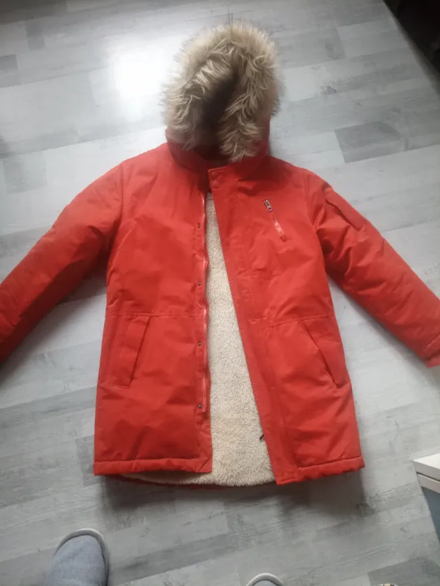 Detalles del productoChamarra de invierno para niño en color naranja, ideal para mantener el calor.152 cm.12 años.
