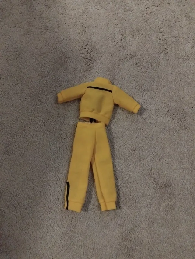 Conjunto de chándal para muñeca Lesly. - Color amarillo. - Diseño deportivo con detalles negros.