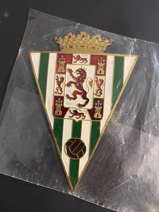Chapa Club de Fútbol Cordoba, alos 70, metálica, para colocar en cualquier vehículo, mide unos 9 cm de altura, pintada a mano