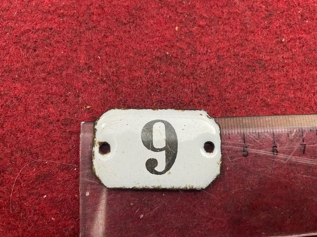 Chapa esmaltada antigua con el número 9, pero puede servir para el 6