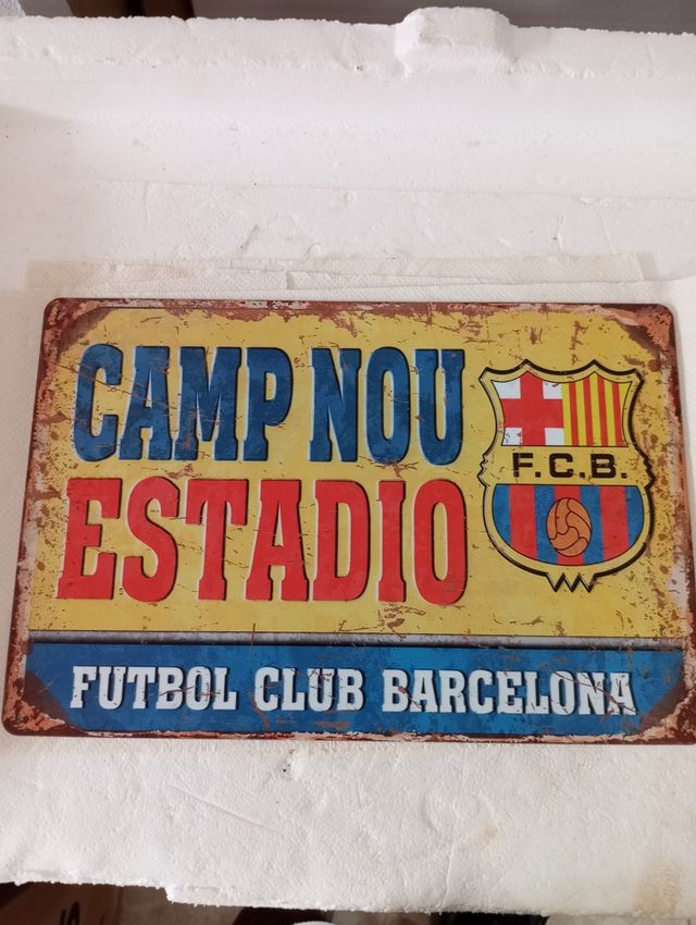 Detalles del productoChapa decorativa del Fútbol Club Barcelona, con el escudo del club y el texto Camp Nou Estadio.