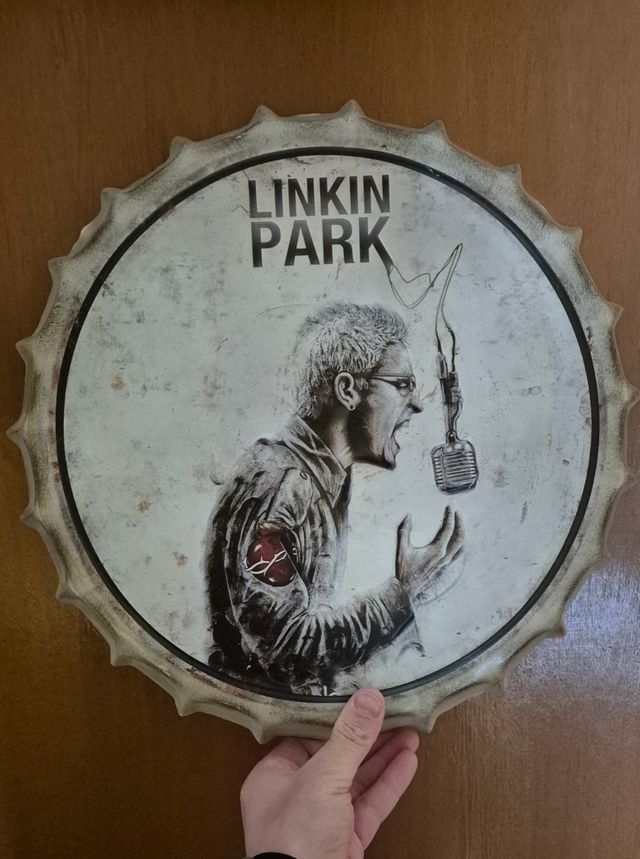 Chapa gigante decorativa de LINKIN PARK metalica y con colgador. En perfecto estado.