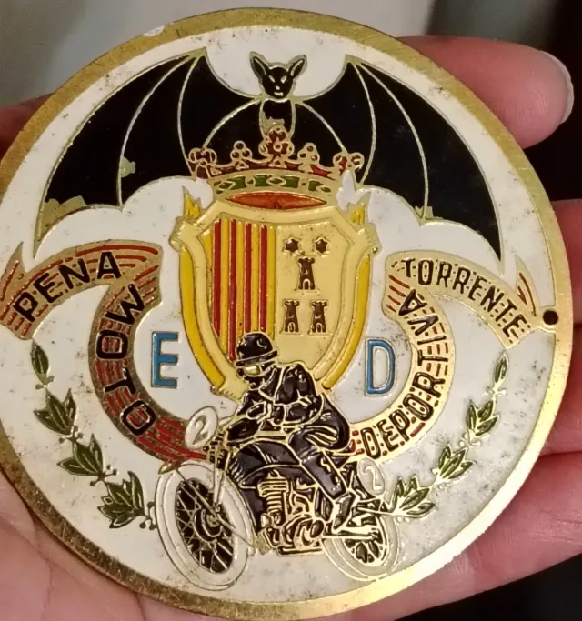 Detalles del productoChapa antigua de la Peña Motorista Torrent Deportiva.