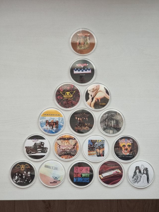 Detalles del productoPack de 16 chapas premium (58mm) de la banda americana formada en Boston con mayor número de discos de oro y platino: Aerosmith.