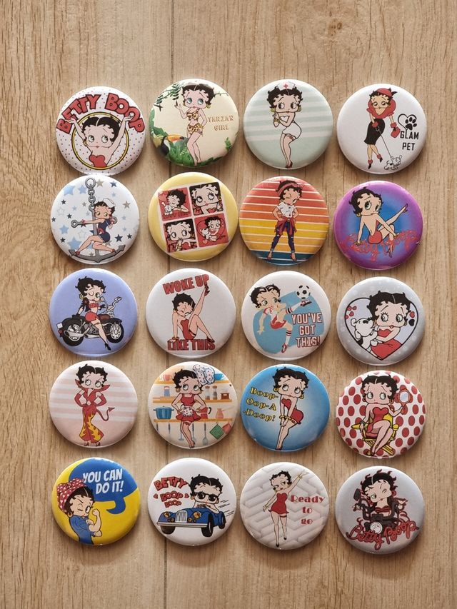Detalles del productoPack de 20 chapas premium (58mm) de la célebre Betty Boop.