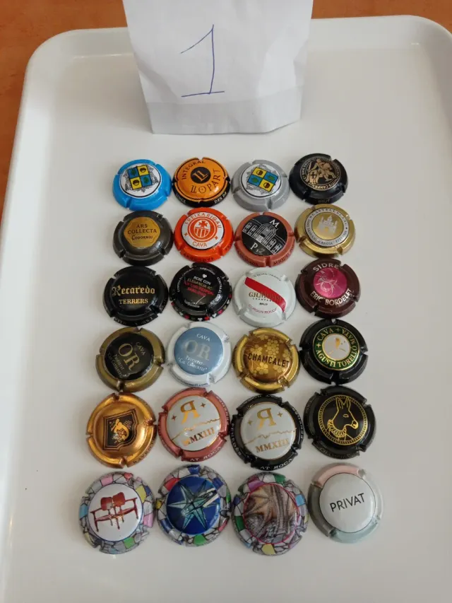 Detalles del productoLote de chapas de cava de diferentes marcas y diseños. Perfectas para coleccionistas.