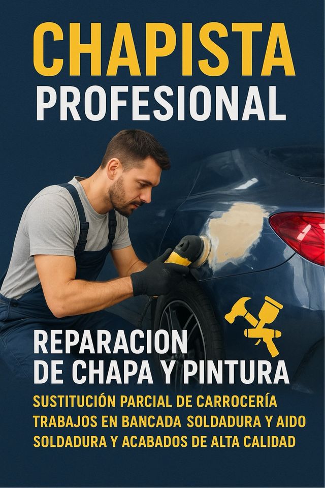 Soy chapista con 2 años de experiencia en el sector y formación en carrocería de automóviles. Ofrezco servicios de reparación de chapa y pintura con resultados profesionales: