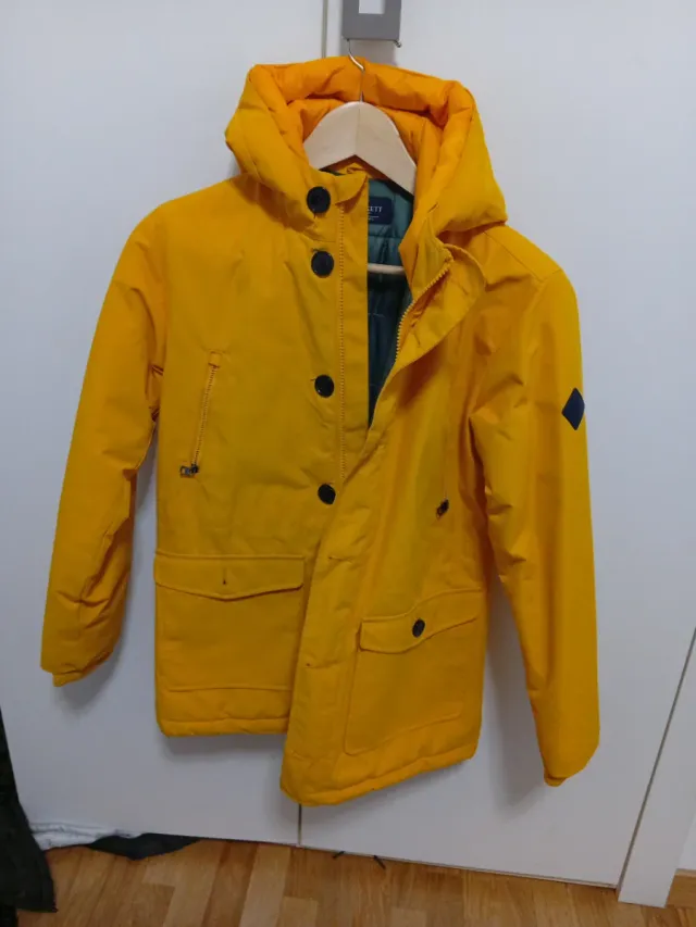 Chaqueta tipo abrigo para niño en color amarillo. - Capucha. - Cierre de botones. - Bolsillos delanteros.