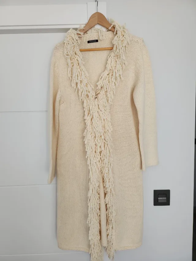 Chaqueta abrigo sobre camisa Genfins lana flecos