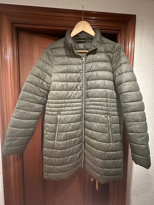 Abrigo plumífero largo mujer Lefties verde kaki