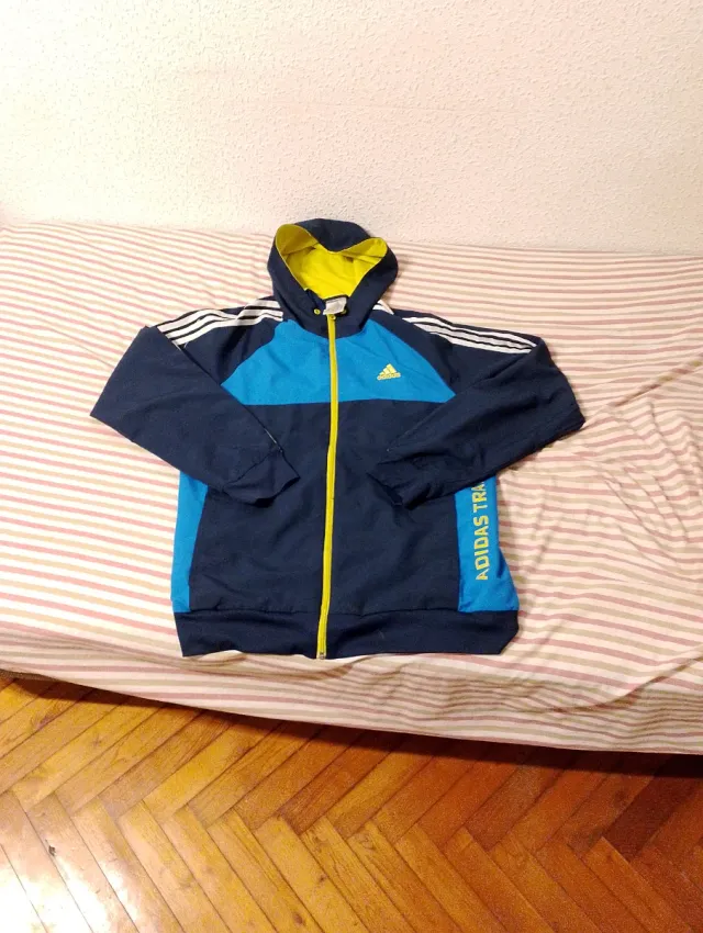 Chaqueta Adidas cremallera vintage azul y amarillo