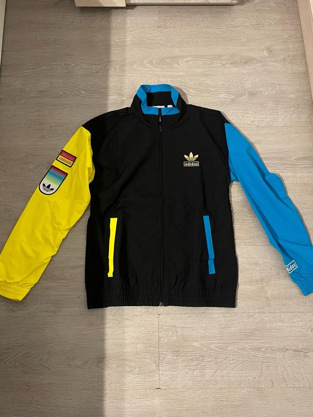 Chaqueta Adidas Original Negra, Azul y Amarilla