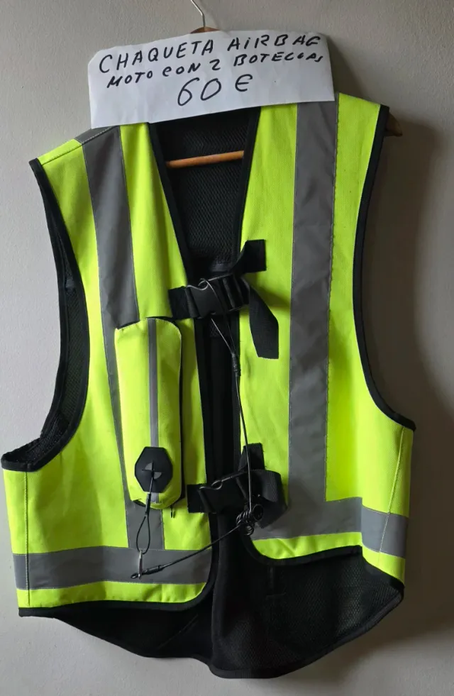 Detalles del productoChaqueta de airbag para moto con dos botellas de aire incluidas. Ideal para motoristas que buscan seguridad adicional.