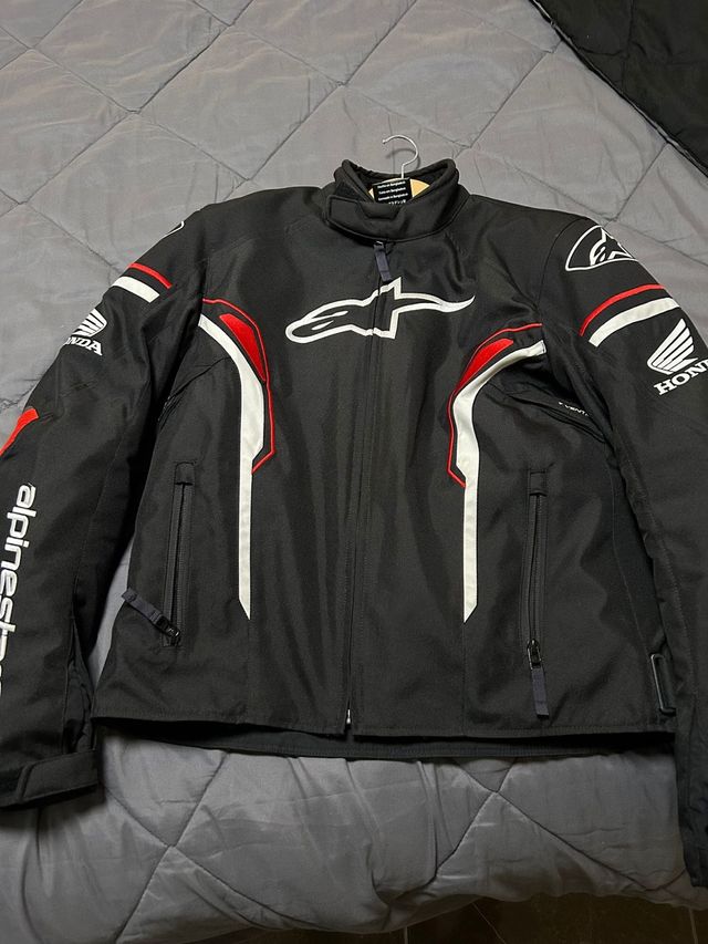 Chaqueta de moto Alpinestars de Honda. Talla M. Lleva forro térmico desmontable para invierno. Protección en hombros y codos.