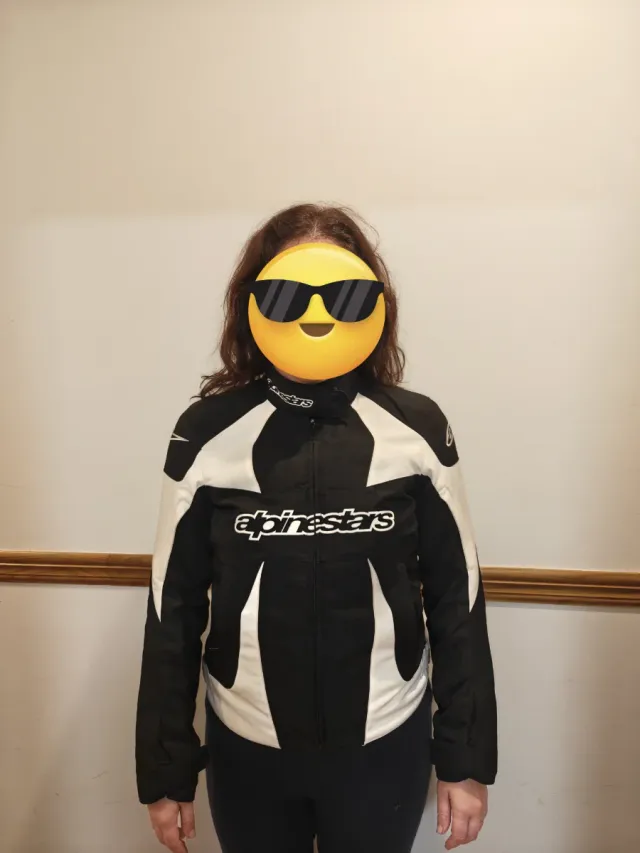 Detalles del productoChaqueta de moto Alpinestars de mujer talla L en color negro y blanco modelo stella. Tiene un forro interior calentito, protecciones en hombros, codos, y espalda, varios bolsillos interiores para guardar cosas, y tiene cremallera para poder enganchar un pantalón.