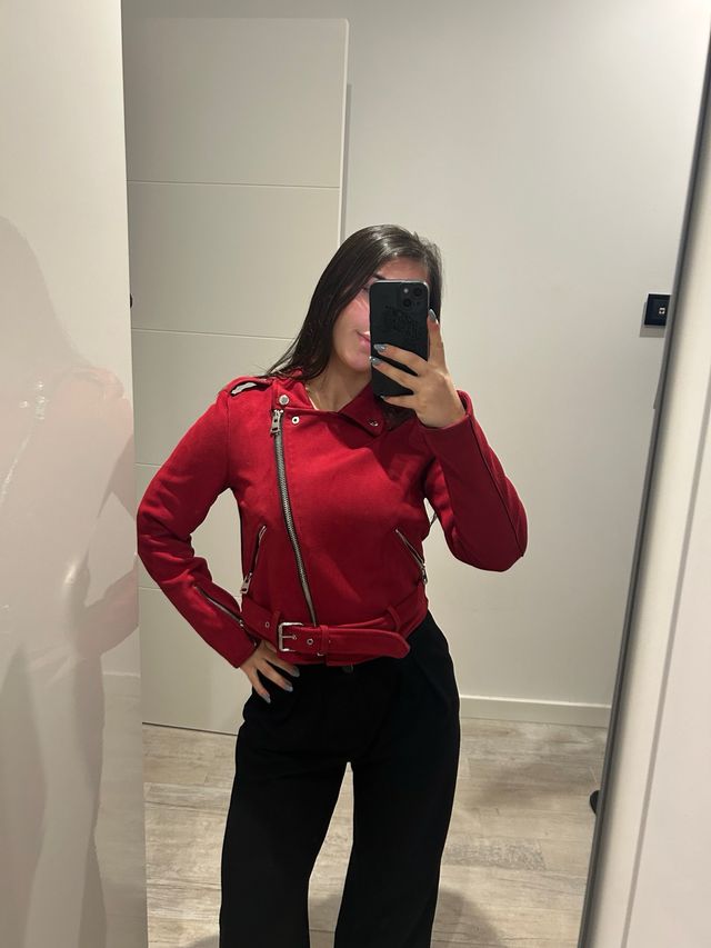Chaqueta ante roja Bershka Talla S