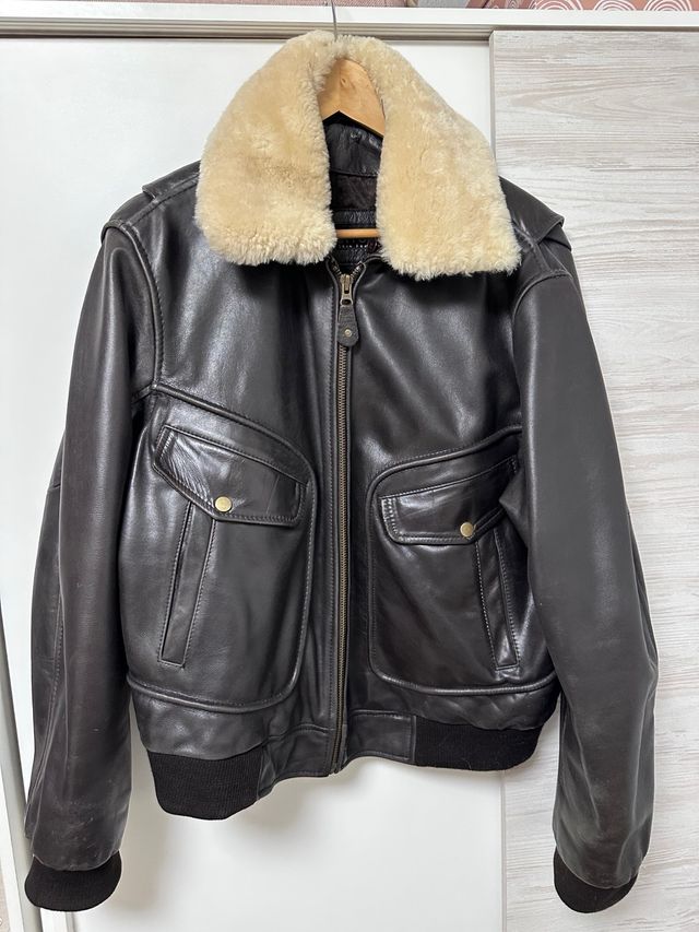 Chaqueta Aviador Piel Marrón con Cuello de lana