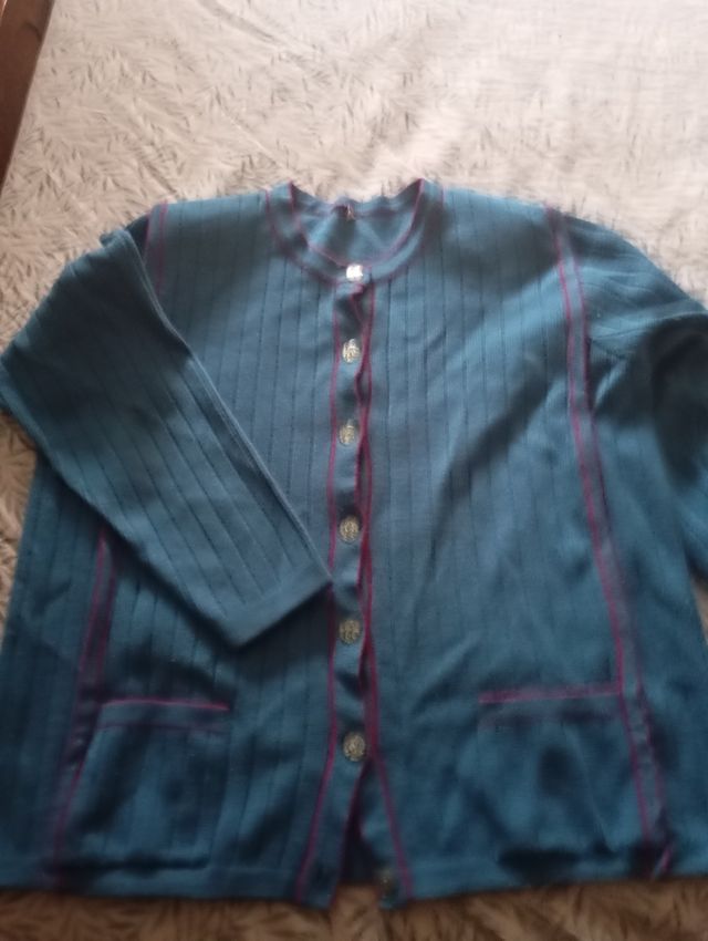 Chaqueta azul con ribete rosa