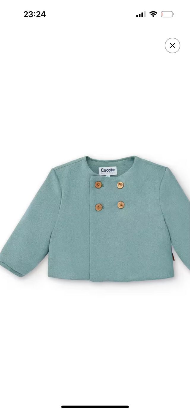 Detalles del productoChaqueta de bebé en color verde de la marca Cocote.