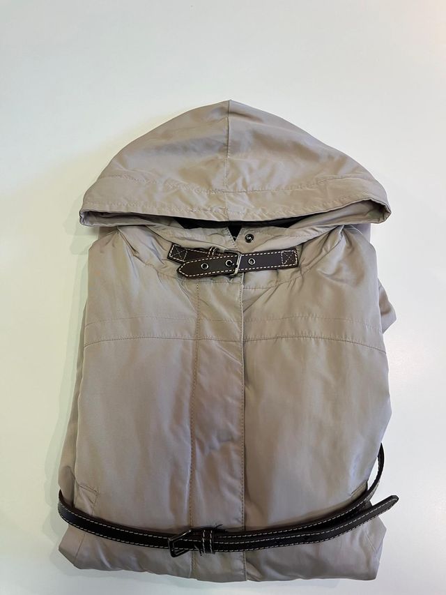 Chaqueta beige con capucha y cinturón