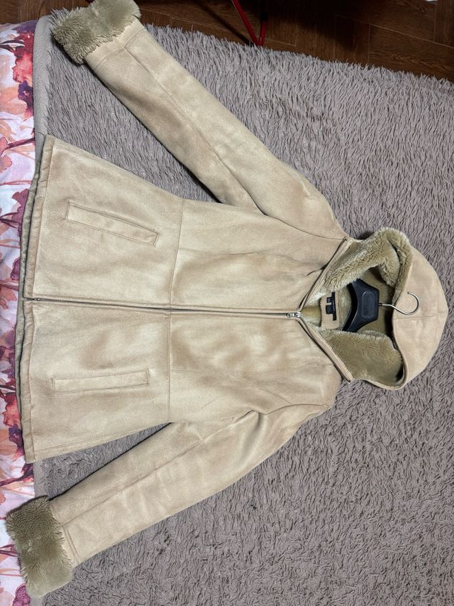 Chaqueta beige con pelo y capucha