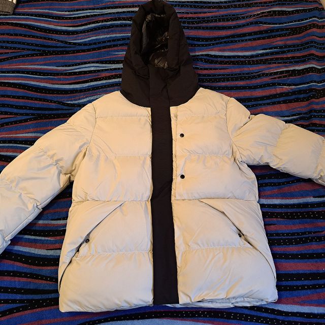 Chaqueta beige y negra con capucha Mnclr