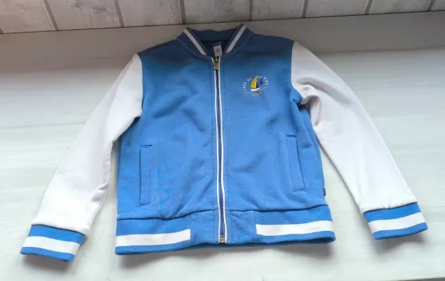 Detalles del productoChaqueta estilo beisbolera en color azul y blanco, talla 6 años.