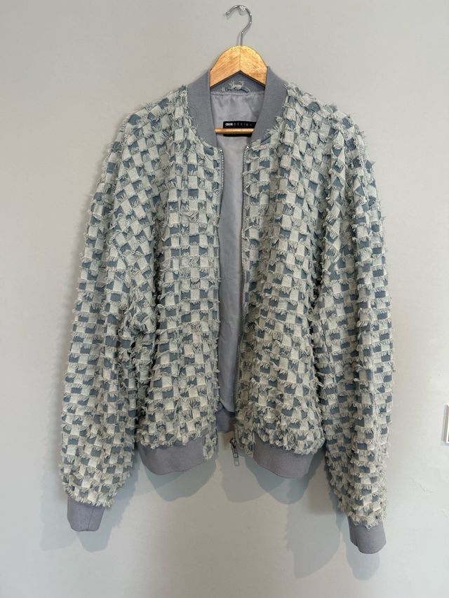 Chaqueta bomber vaquera extragrande con patrón de cuadros dameros de ASOS DESIGN