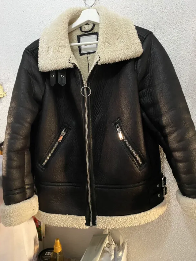 Chaqueta borrego marrón oscuro.