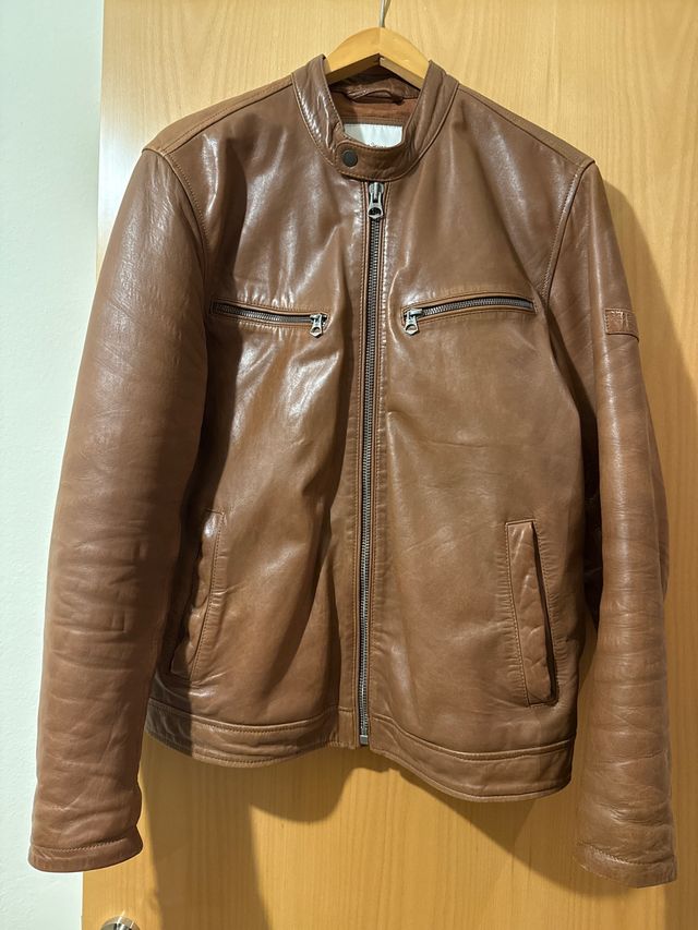 Chaqueta cazadora de piel Pepe Jeans marrón