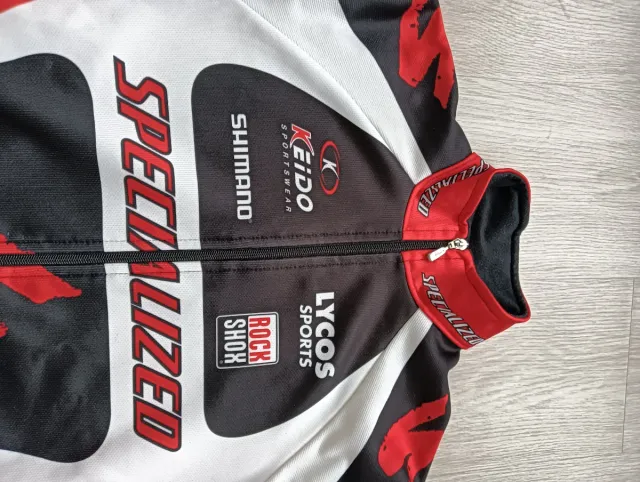 - Logos de Specialized, Shimano, Keido, Rock Shox y Lycos Sports.