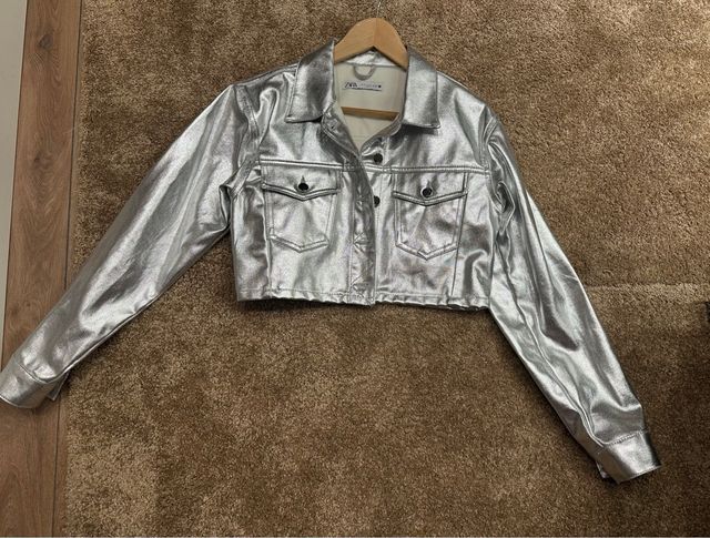 Chaqueta corta plateada Zara