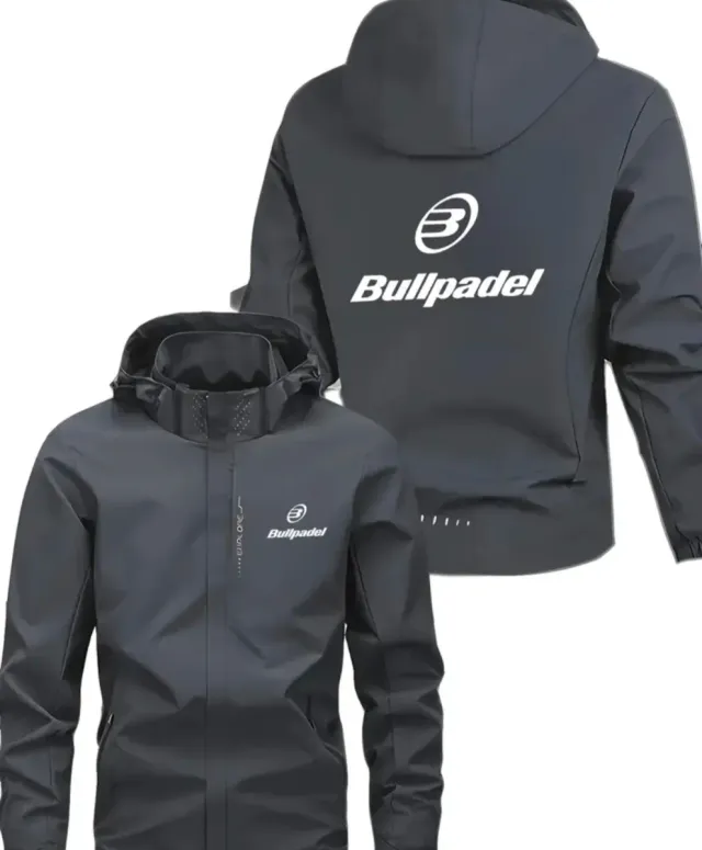 Chaqueta cortavientos de la marca Bullpadel. - Color gris oscuro. - Diseño con capucha. - Logo de la marca en el pecho y la espalda.