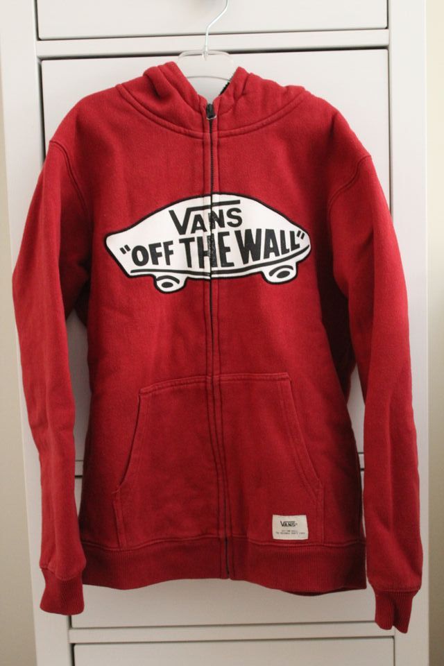 Chaqueta roja de niño, con cremallera y capucha de la marca Vans (talla M de niño). El interior es de borrego color negro.