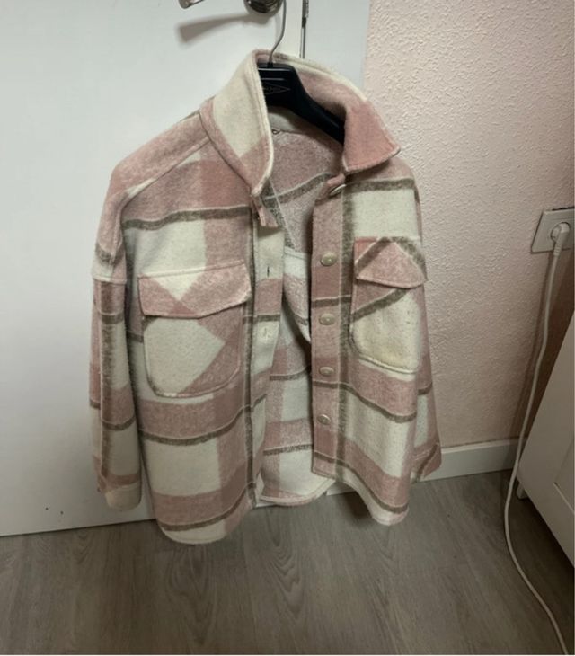 Chaqueta cuadros rosa y beige Stradivarius
