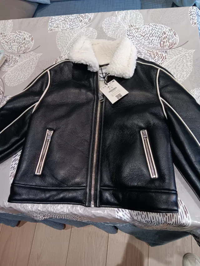 Chaqueta cuero efecto piel con borreguito