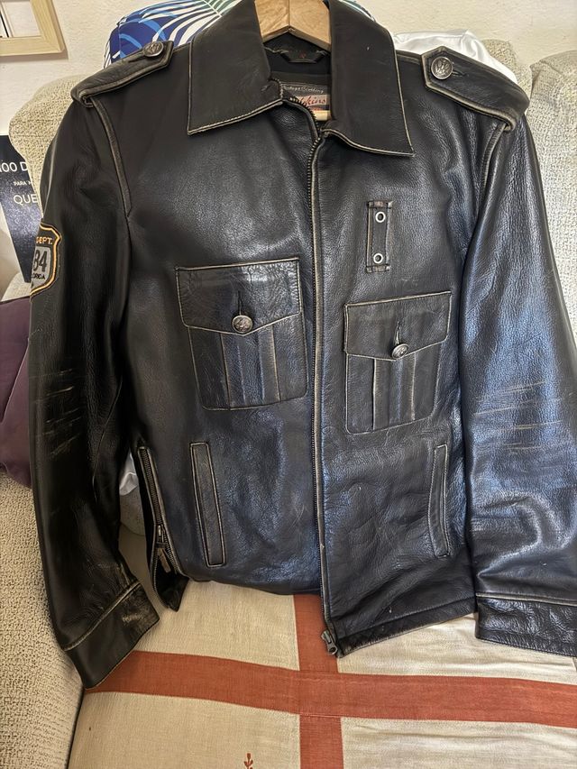 CHAQUETA CUERO ENVEJECIDO MODELO POLICIA