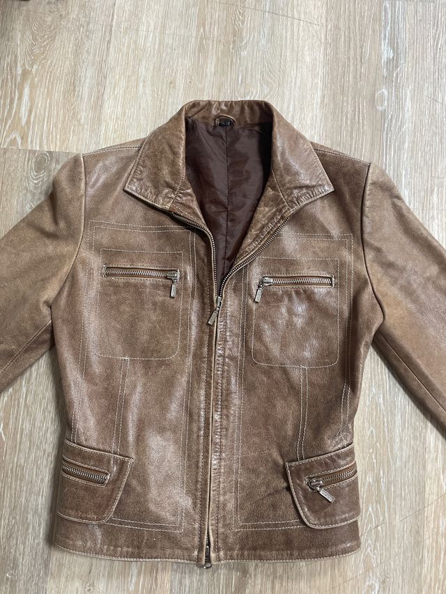 Chaqueta Cuero Marrón Mujer Talla M entallada