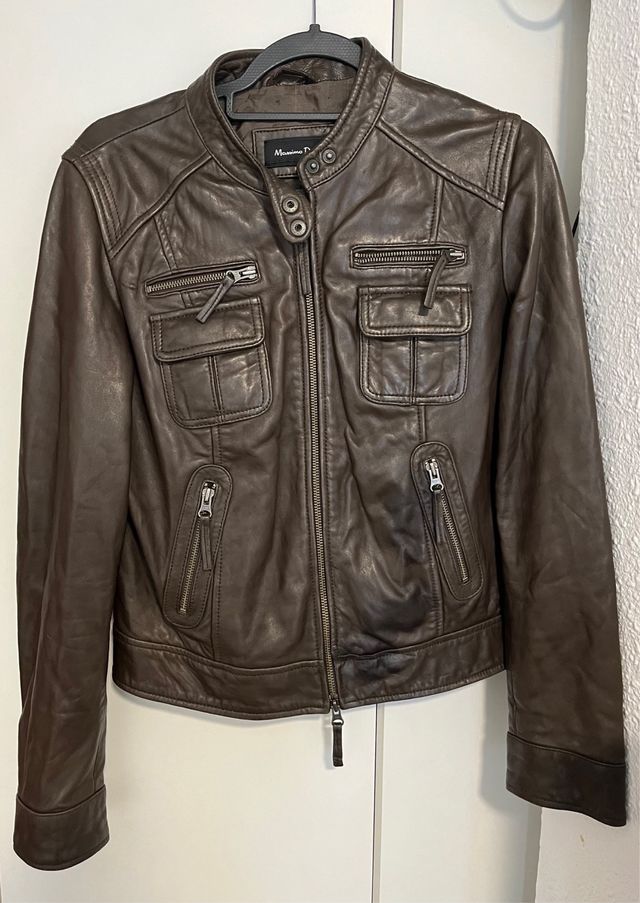Chaqueta cuero Massimo Dutti marrón