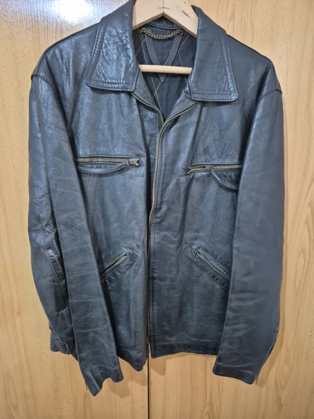 Chaqueta Cuero Moto Vintage Hombre Negra