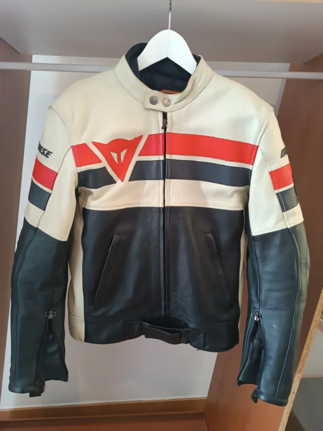 Detalles del productoChaqueta de cuero Dainese con un diseño deportivo y llamativo.
