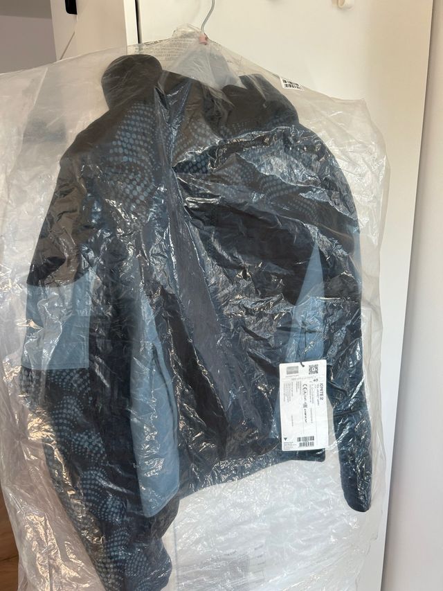 Chaqueta Dainese para mujer con un diseño moderno y detalles en relieve. - Talla 46 (M) - Color negro y azul. - Cierre de cremallera frontal. - Capucha integrada. - Tejido verano - Nueva