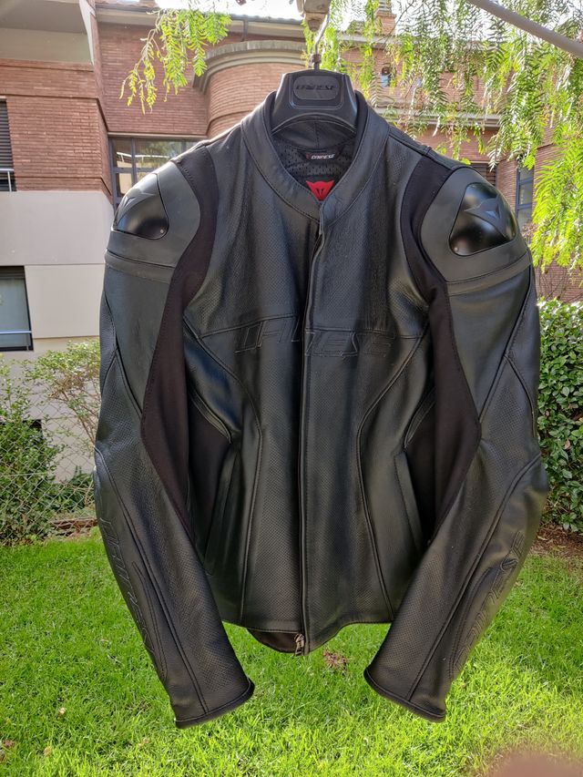 Detalles del productoChaqueta Dainese de cuero perforado, color negro mate, talla 54 (L), completamente nueva y sin estrenar.