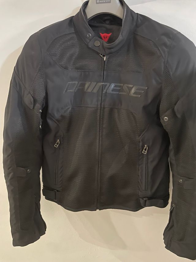 Detalles del productoChaqueta de moto Dainese de verano, en color negro. Diseño moderno y funcional. Cortavientos interior desmontable, protecciones rígidas en hombros y codos, hueco para espaldera. La vendo porque me ha quedado pequeña.