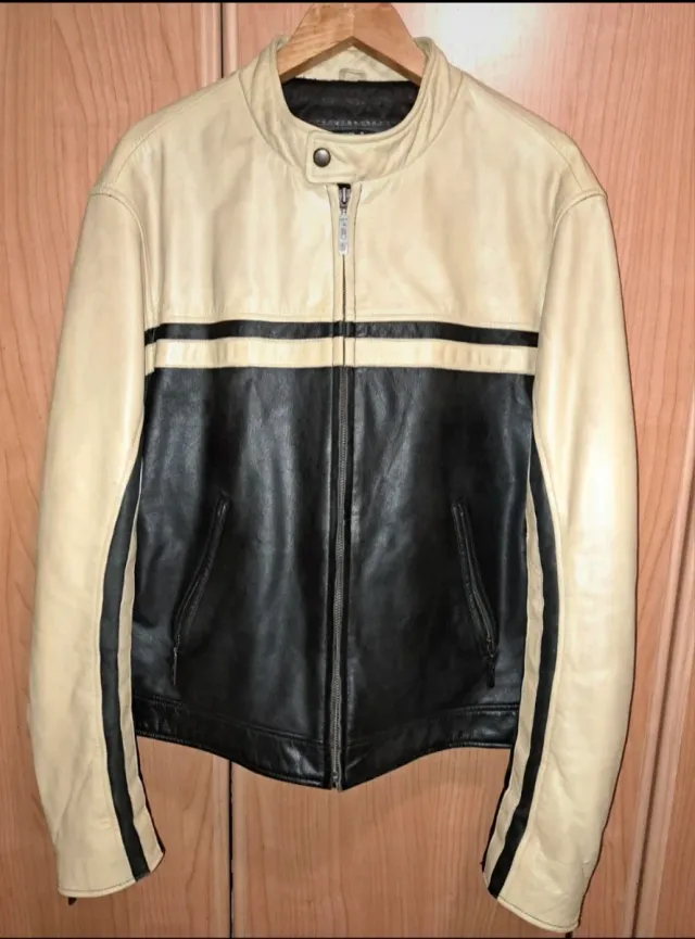 Chaqueta de Piel Beige y Negra