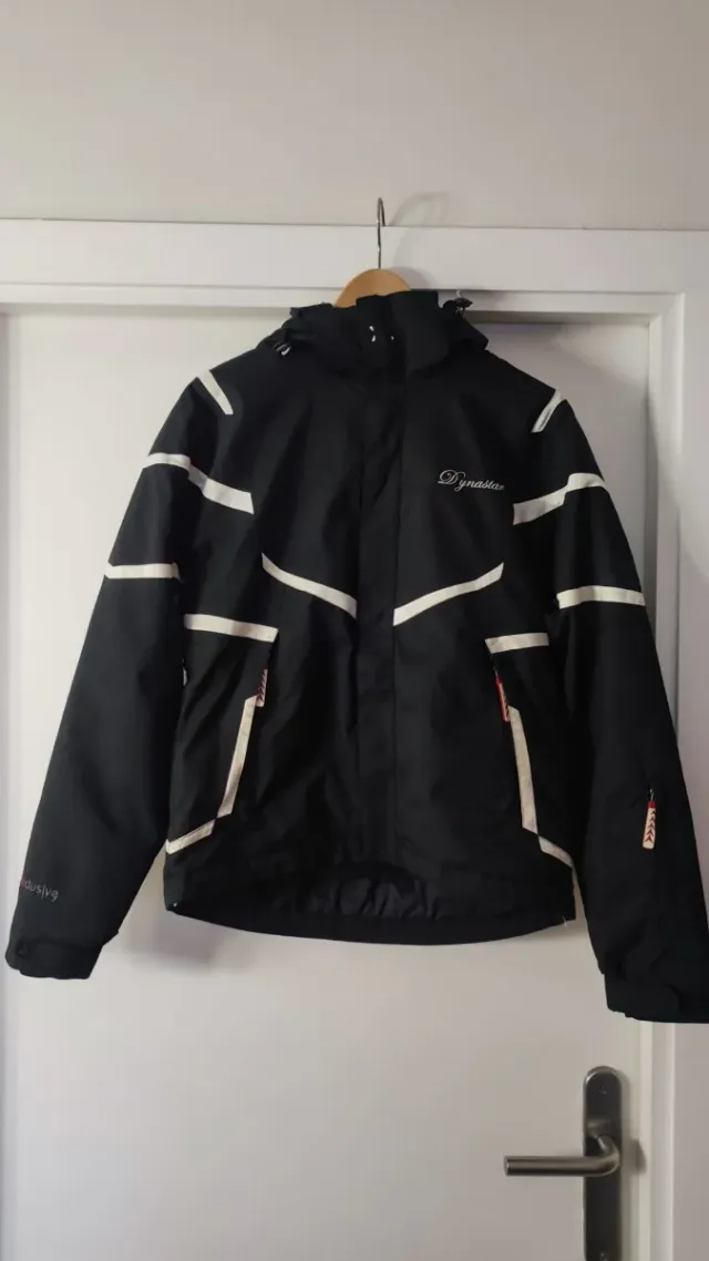 Detalles del productoChaqueta de ski dynastar. Talla M mujer. Repelente al agua. Capucha desmontable. Puños ajustables con velcro. Cremallera en las axilas, para mejorar ventilacion si hace calor. Escucho ofertas razonables.