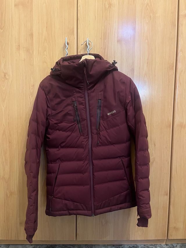 Detalles del productoChaqueta de esquí de color burdeos, ideal para mantenerse abrigada en la montaña. Presenta un diseño moderno y funcional.