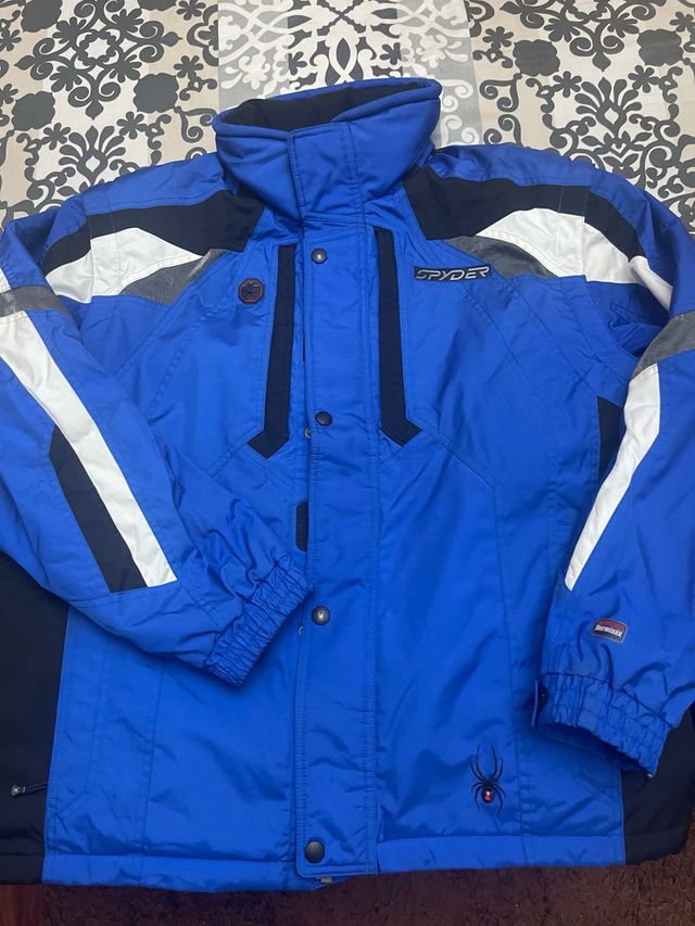 Detalles del productoChaqueta de esquí Spyder de color azul vibrante, con detalles en negro, blanco y gris. Ideal para actividades en la nieve. Está en perfecto estado, se hace chaleco, talla XL .