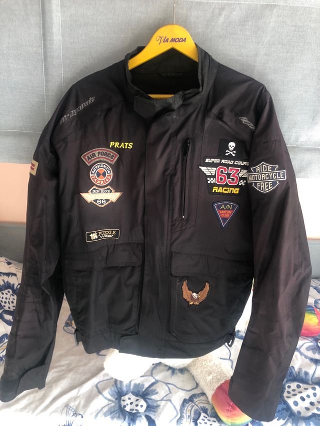 Detalles del productoChaqueta de motorista de verano con un diseño llamativo y múltiples parches.